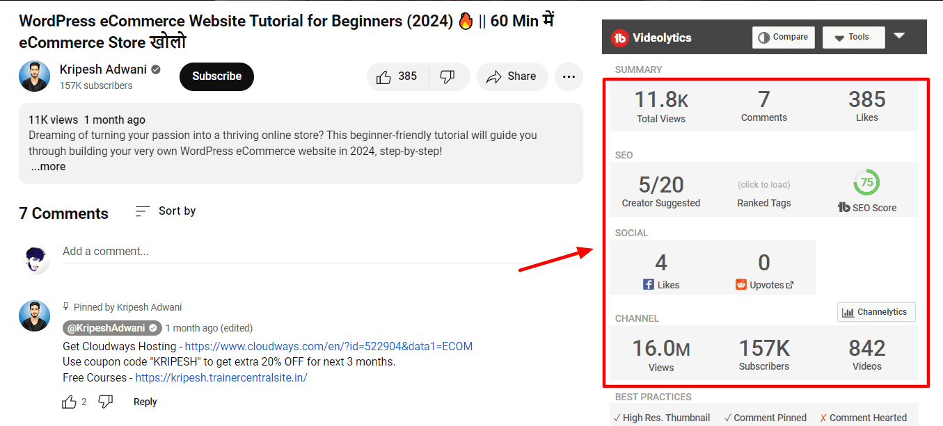 If you are more inclined towards VidIQ, you can use my link and enter the coupon code “kripeshadwani” to get 90% off on your purchase for the first month.