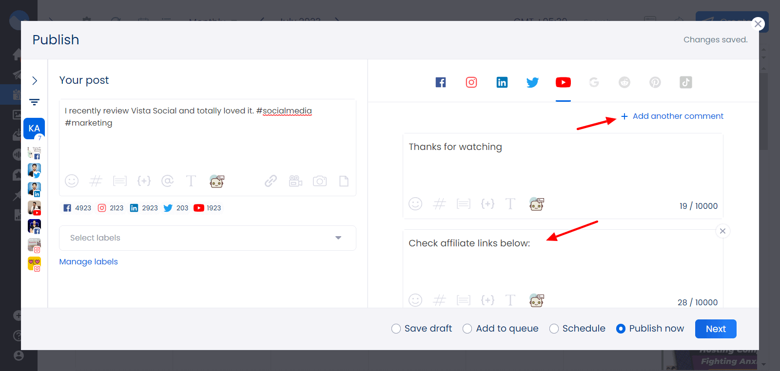 I previously used to work with Publer. But since they removed their Twitter integration, I made a switch to Vista Social. Another reason was its easy comments management feature, which Publer lacked.