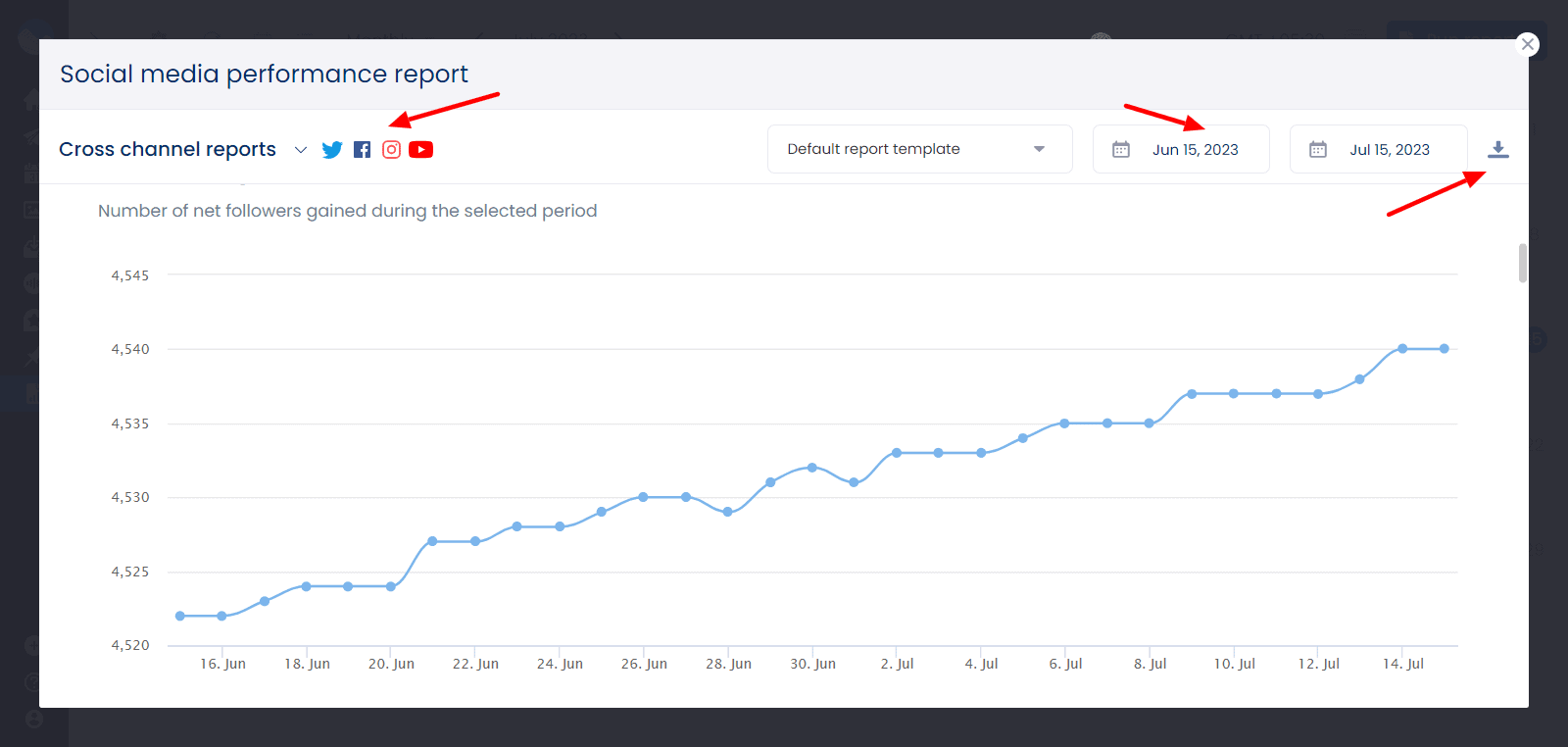 For each of these reports, you get engaging graphs and charts representing the data. You can also customize the analysis period and download or schedule your reports with ease. Overall, reports are helpful for forming a focused social media strategy around your content by analyzing your growth across channels.