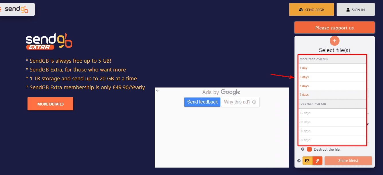 SendGB is an online file sharing service that was started in 2015. It lets you share large files with other users quickly and requiring no registration!