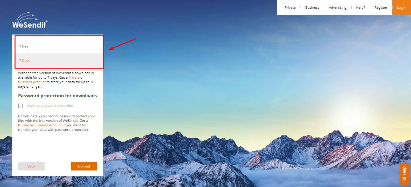 The links for your transferred files remain on their servers for a maximum of 7 days. You can choose if you want them to store your files for 1 day or 7 days as per your convenience.