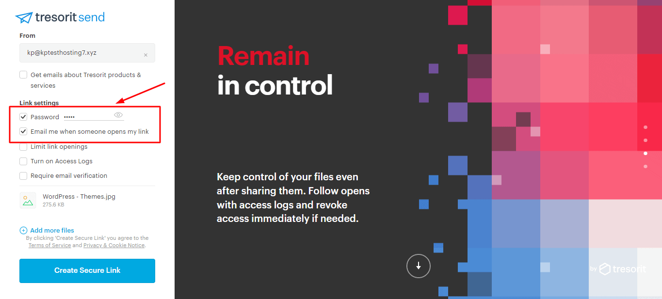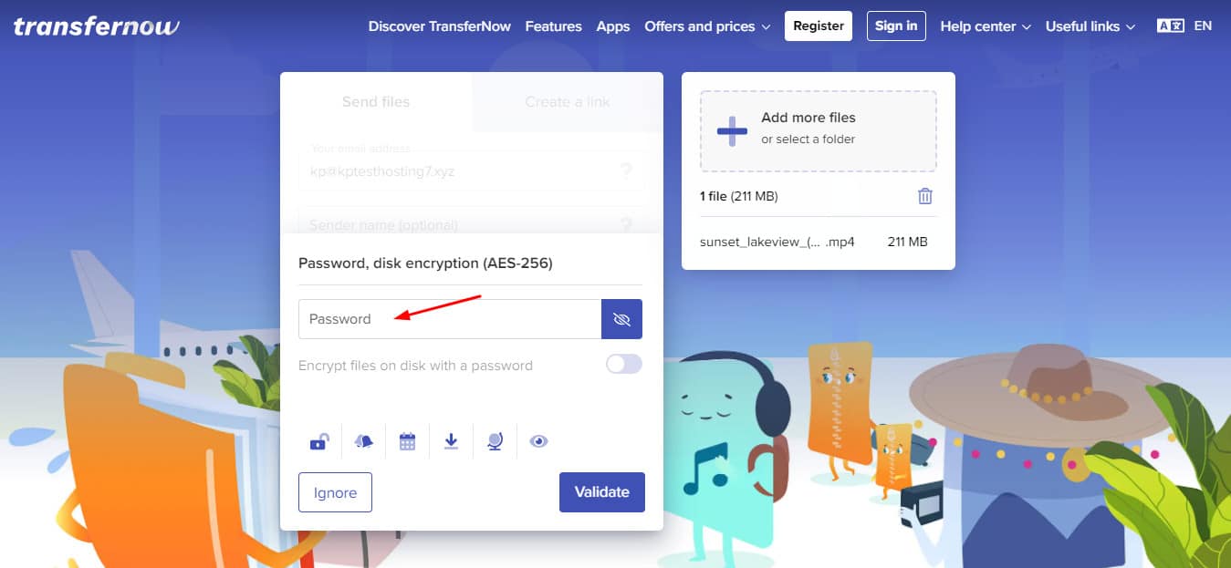 If your transferred files are sensitive in nature, you can also encrypt them with a secure password to avoid intrusion by any third parties.