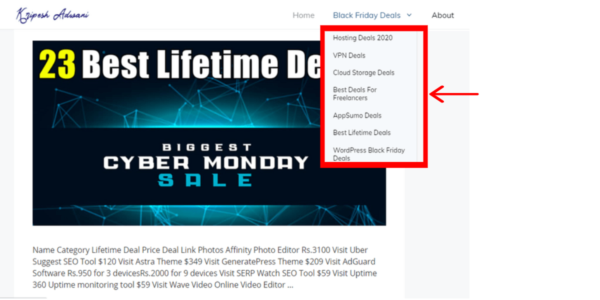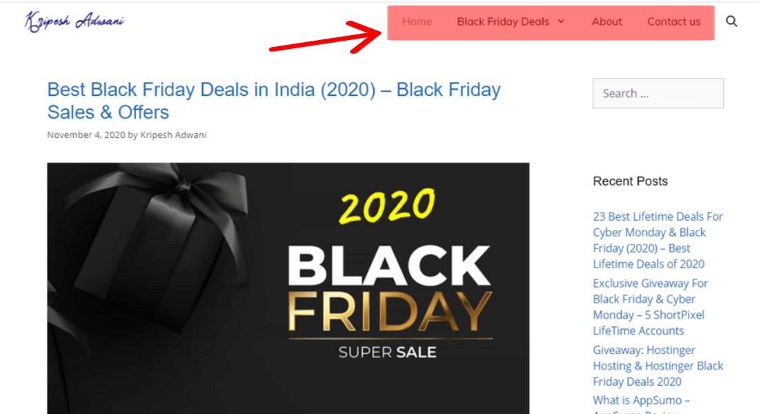 The header section of your blog has the Navigation Bar. It comprises links to the important pages, categories, or services on the blog.
