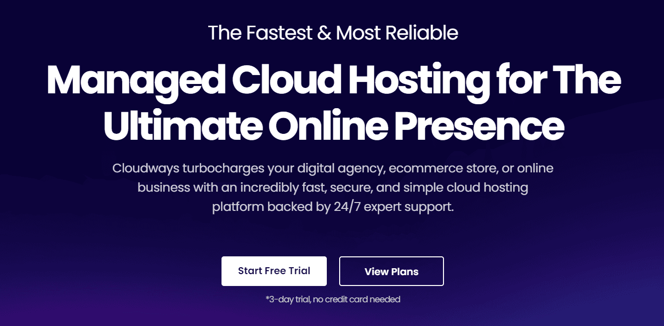 Cloudways is an excellent choice. It’s best for online stores and sites with heavy traffic. They also have a 3-day trial period to test it out risk-free.
