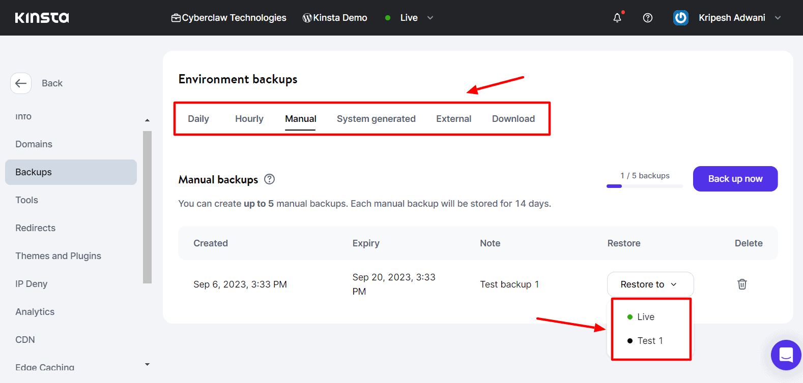 Kinsta has an edge over WP Engine with its excellent 99.99% uptime compared to WP Engine’s 99.95%. Its data centers span more regions and it lets you generate multiple types of backups that are retained for 14 days. On the other hand, WP Engine offers an extended backup retention of 60 days.