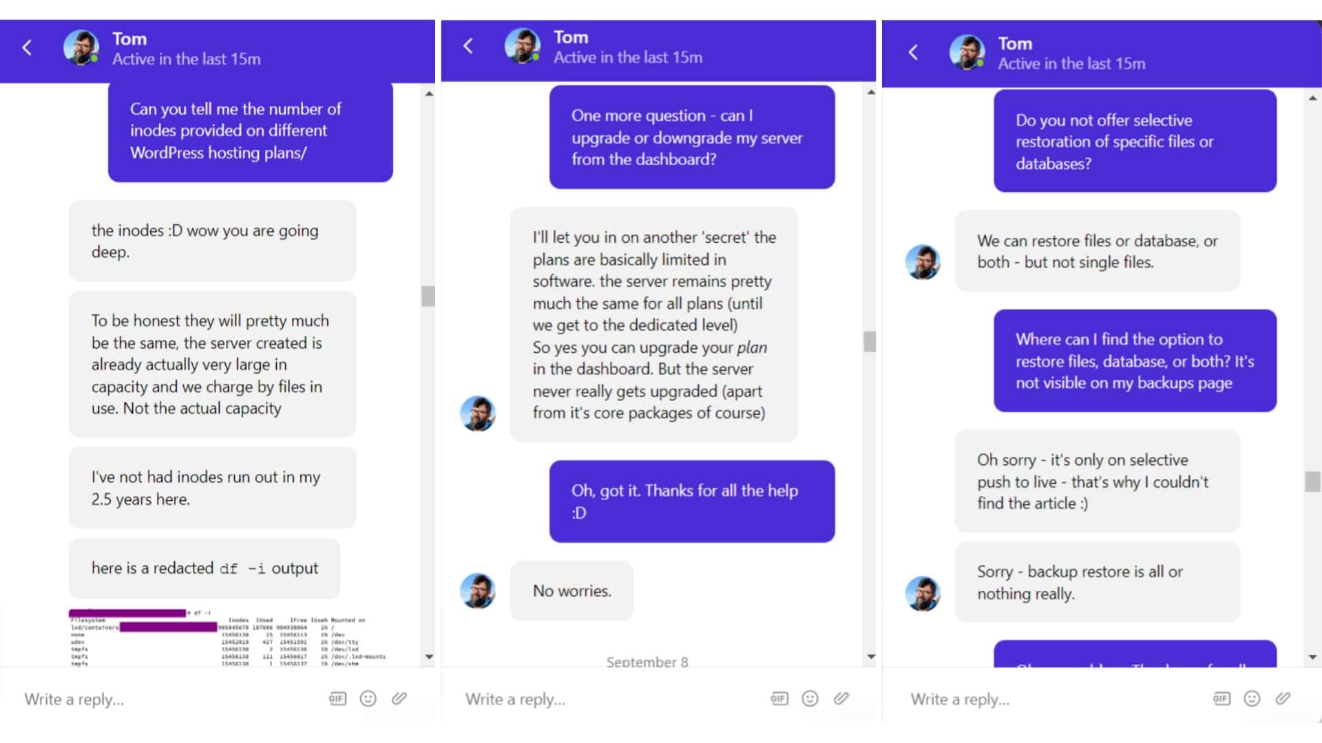 In terms of customer support, both hosts offer live chat support, email tickets, and a good knowledge base of articles. The only difference is that WPX’s support team offers faster replies in under 1 minute. Whereas, WP Engine takes up to 5 minutes to respond to users’ queries.