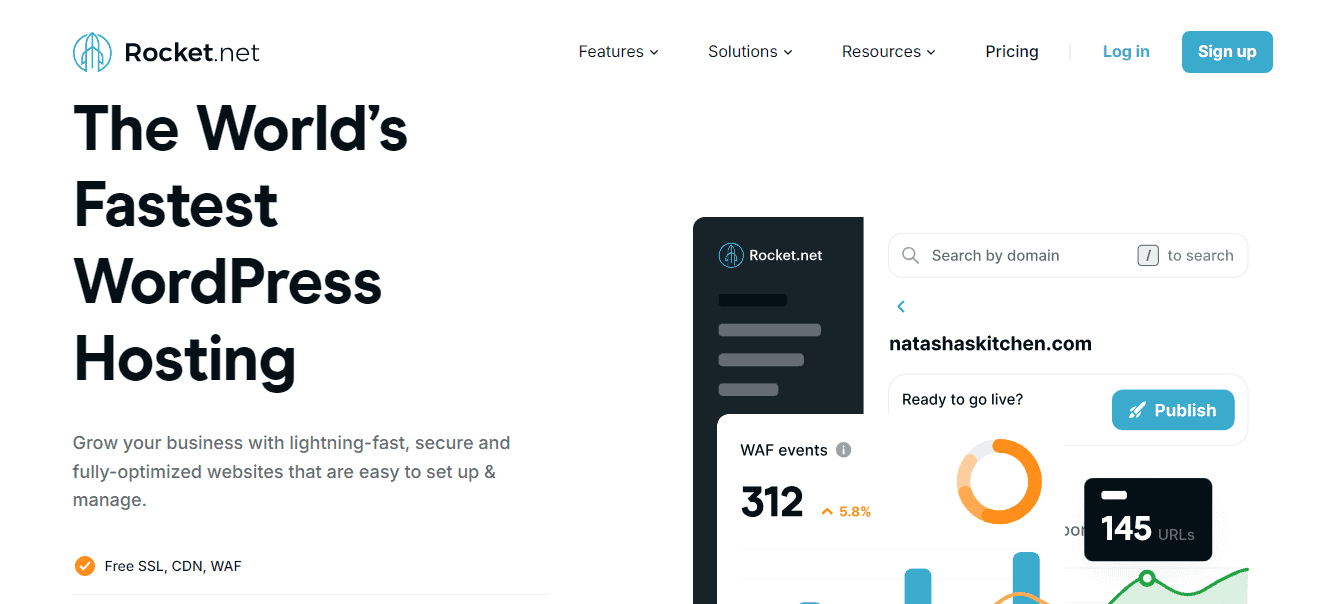 If you need an easy-to-use hosting equipped with Litespeed servers and Cloudflare Enterprise for terrific performance, Rocket.net is a slightly expensive but apt alternative for WP Engine.