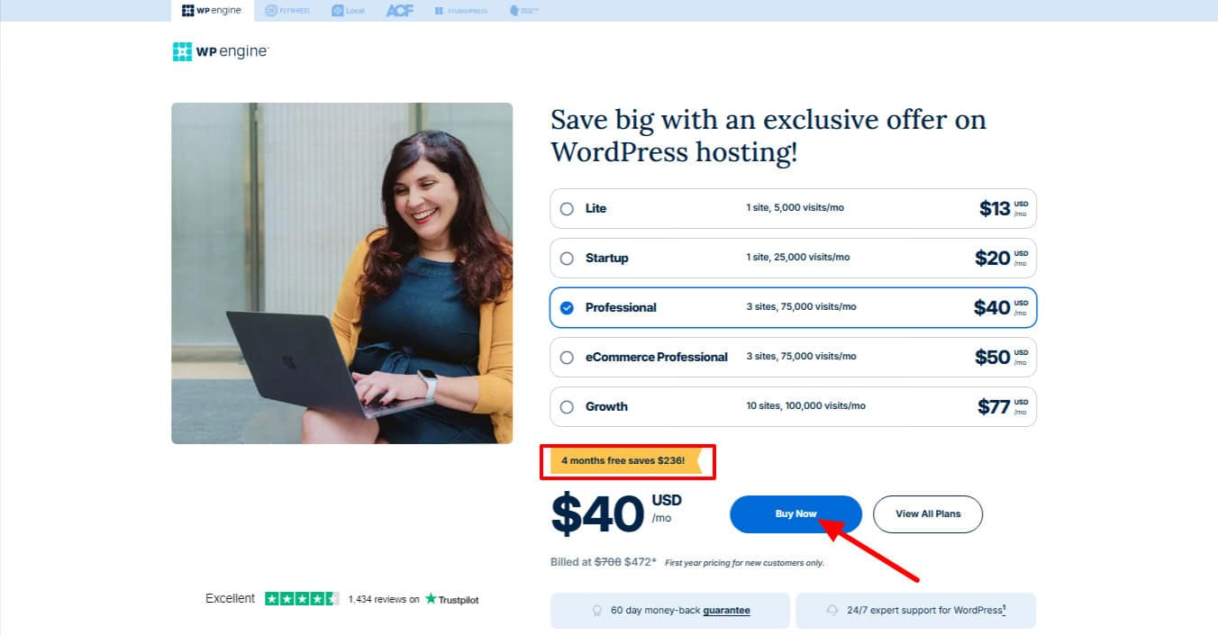 WP Engine is also offering 4 months of free hosting on their WordPress Hosting and WooCommerce Hosting plans. WordPress hosting plans start at just $20/month, and WooCommerce hosting plans start at $24/month.