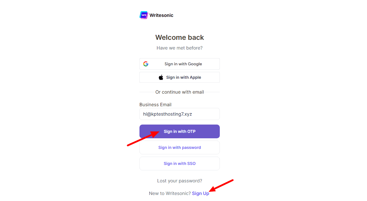 Then, you’ll need to sign up for a free account on Writesonic to get 10k premium words. If you already have a Writesonic account, you can sign in at this step.